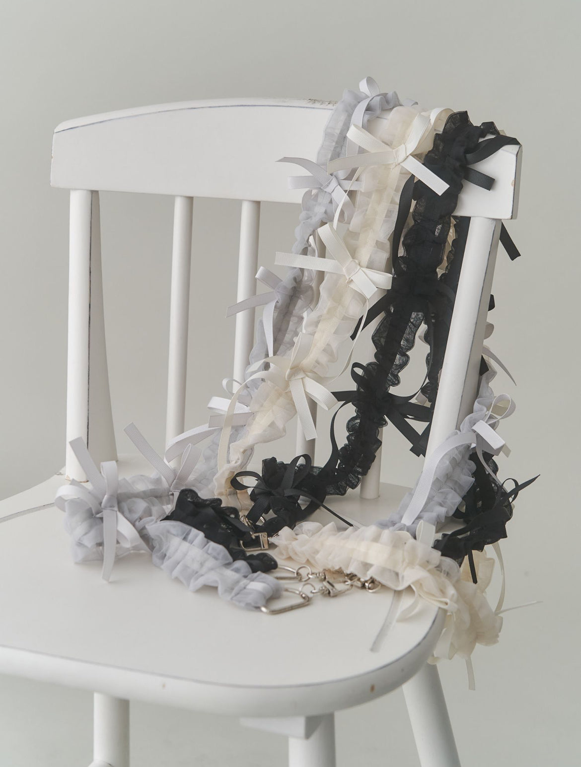 This multi-strap features flowing ribbons and airy, crinkled organza fabric for a soft, adorable look. It's a must-have item for any outing.