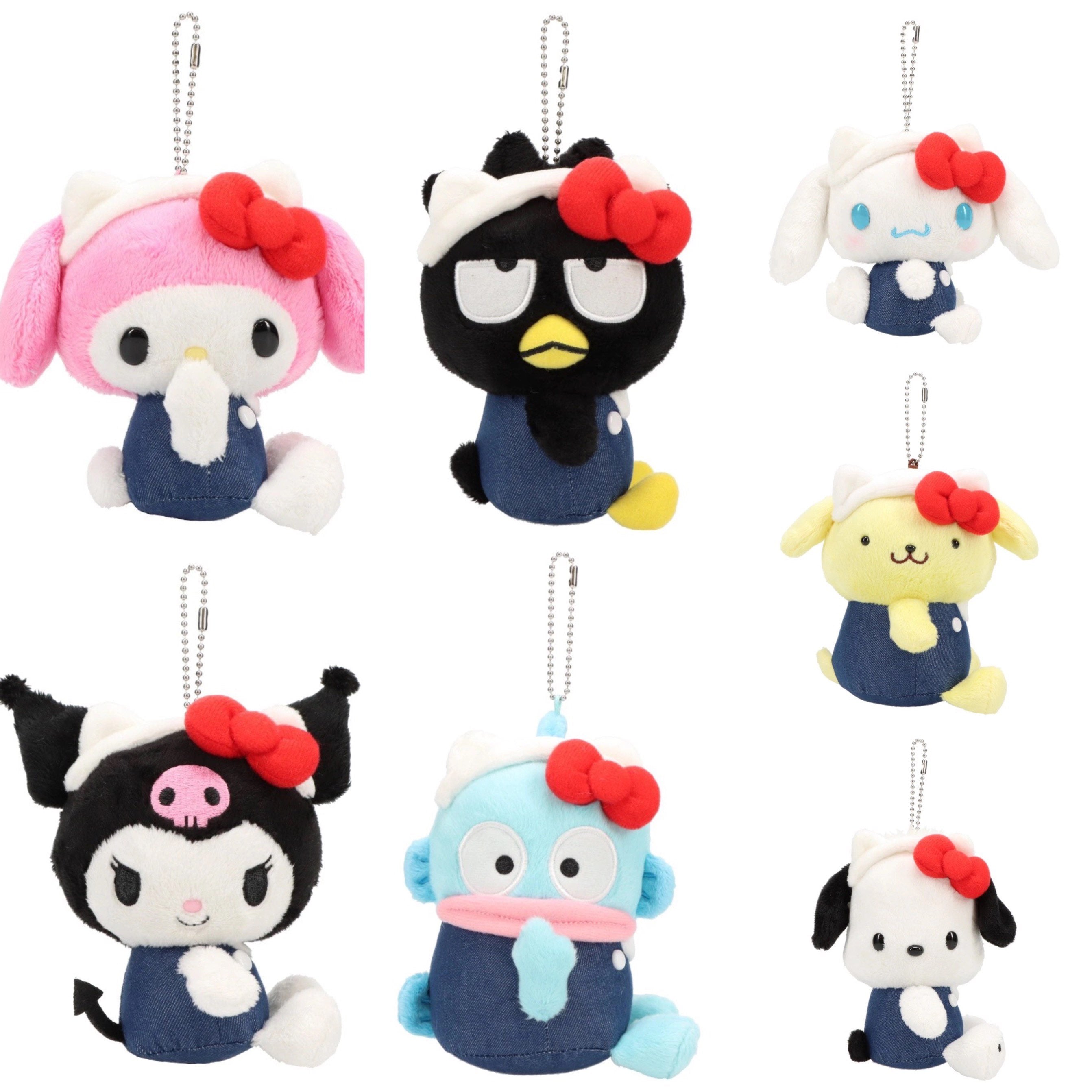 In this special commemorative series, characters like Cinnamoroll, Kuromi, and Pochacco are donning Hello Kitty’s signature look—complete with her classic blue overalls and the iconic red ribbon bow. Each mascot features a "white ear" headband to fully mimic Kitty White's silhouette.