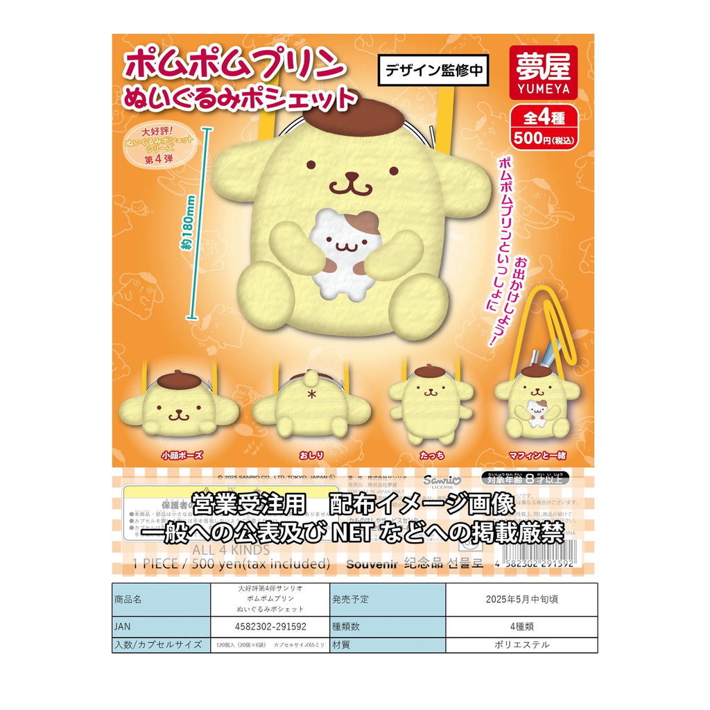 Take Pompompurin on the go with these ultra-cute plush shoulder pouches! Each one features a different pose—sitting, standing, face-down, or showing off his tiny tail. Super soft, roomy enough for small items, and guaranteed to make you smile. 💛