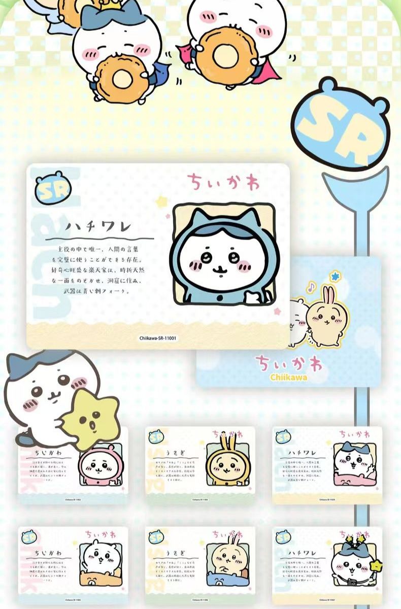 Bring the adorable world of "Something Small and Cute" to your collection! Dive into the ultimate aesthetic with the official Chiikawa "Cute Pack" trading card series. Whether you are a fan of the always-trying Chiikawa, the chatty Hachiware, or the delightfully chaotic Usagi, this massive set is packed with heartwarming moments, stunning artwork, and premium card finishes. Perfectly sized for slipping into your clear phone case, organizing in a collect book, or trading with friends, these cards are a must-have for any Nagano fan.