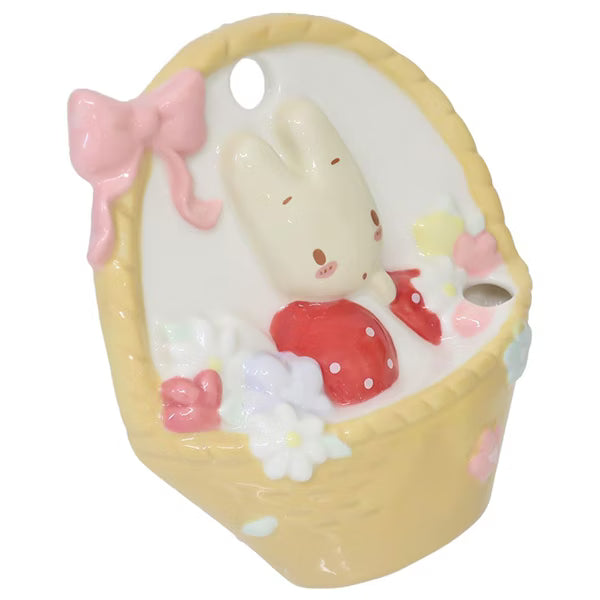 Bring a touch of nostalgic Sanrio charm to your walls with this incredibly sweet Marroncream ceramic vase. Shaped beautifully to mimic a classic woven basket, it features the beloved bunny character playfully peeking out from a bed of colorful flowers, topped with a delicate pink bow. Designed as a traditional Japanese ichirin-zashi (a single-flower vase), it is the perfect size to showcase a freshly picked bloom from your garden, a dried botanical stem, or a long-lasting faux flower. It is a stunning, functional piece of art that seamlessly blends kawaii culture with elegant home decor.