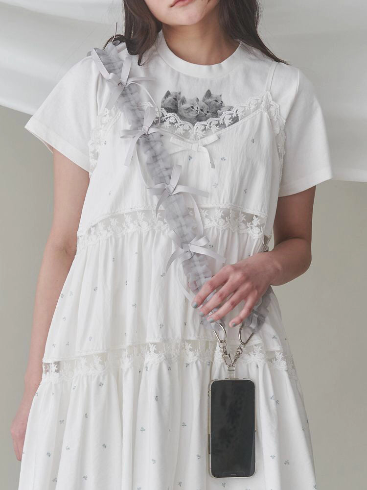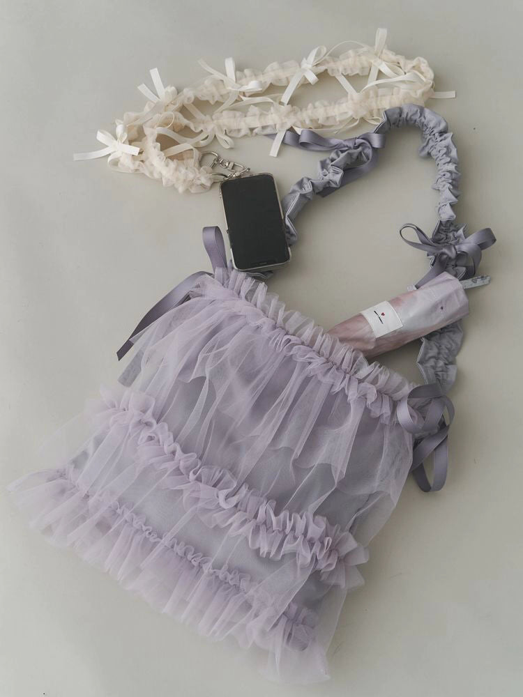 This multi-strap features flowing ribbons and airy, crinkled organza fabric for a soft, adorable look. It's a must-have item for any outing.