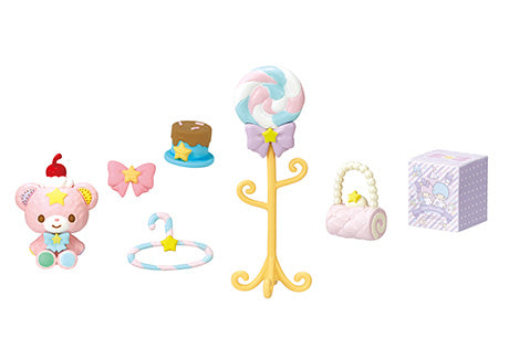 Indulge in a world of sugary dreams with the Re-Ment Little Twin Stars Pastel Sweets Room! This adorable miniature collection, created in collaboration with Sanrio, brings Kiki and Lala into a whimsical room filled with furniture and decor inspired by delicious desserts. Best of all, this complete box set includes all eight unique miniature items, allowing you to build the full pastel paradise shown in the promotional images right away. Delicately crafted with charming details, it is perfect for collectors, diorama builders, or anyone who loves all things kawaii.
