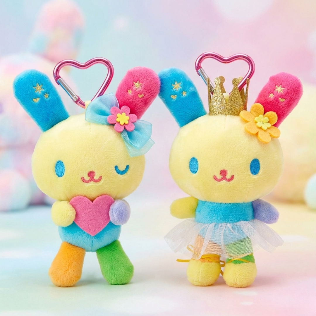 • Signature Details: The plush is crafted in a soft, pastel rainbow palette and is detailed with an orange flower accessory and star-patterned embroidery on the ears.