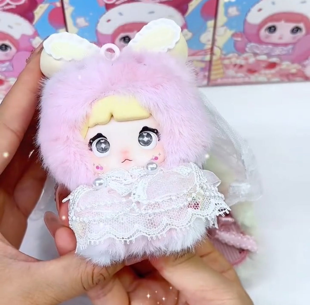 Bring home the sweetest surprise! Each blind box includes one adorable bunny plush pendant dressed in dessert-inspired outfits like Frost Cream, Mint Cream, Strawberry Cream, Pudding Cream, and more. Perfect for bags, keys, or your plush collection!