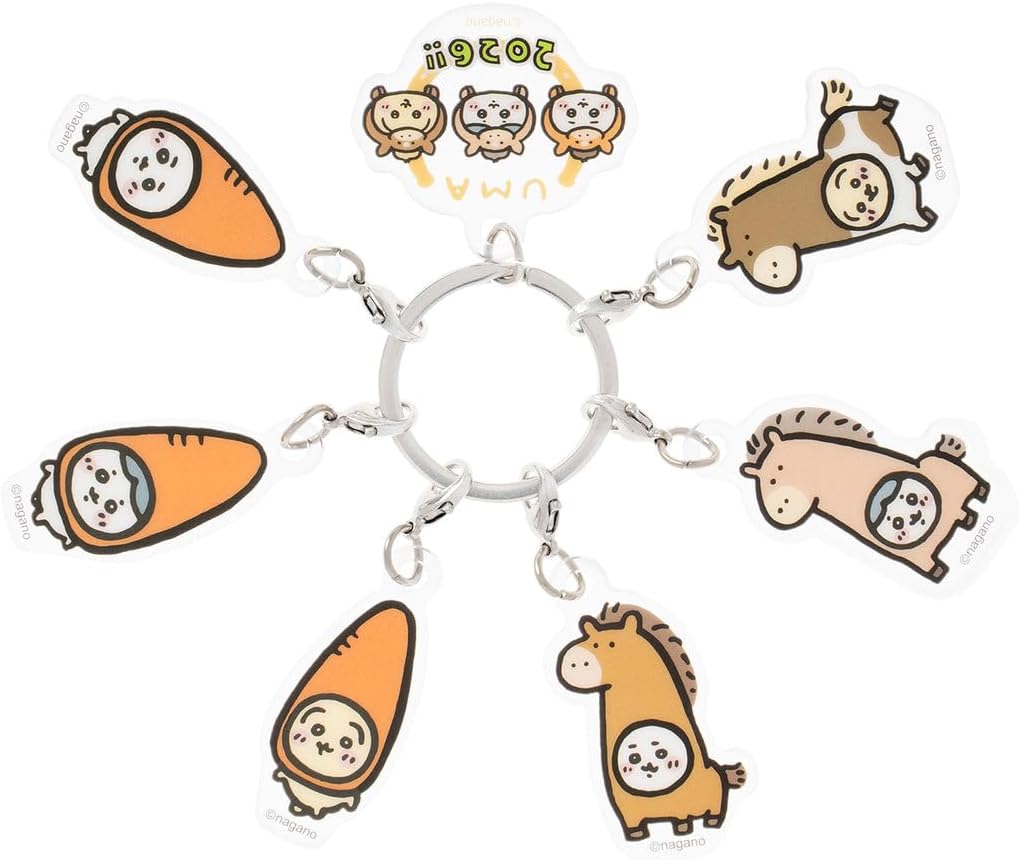 7-Row Acrylic Keychain: Watch the trio gallop along with carrot charms! Approx. 18 cm (7.1") total length.