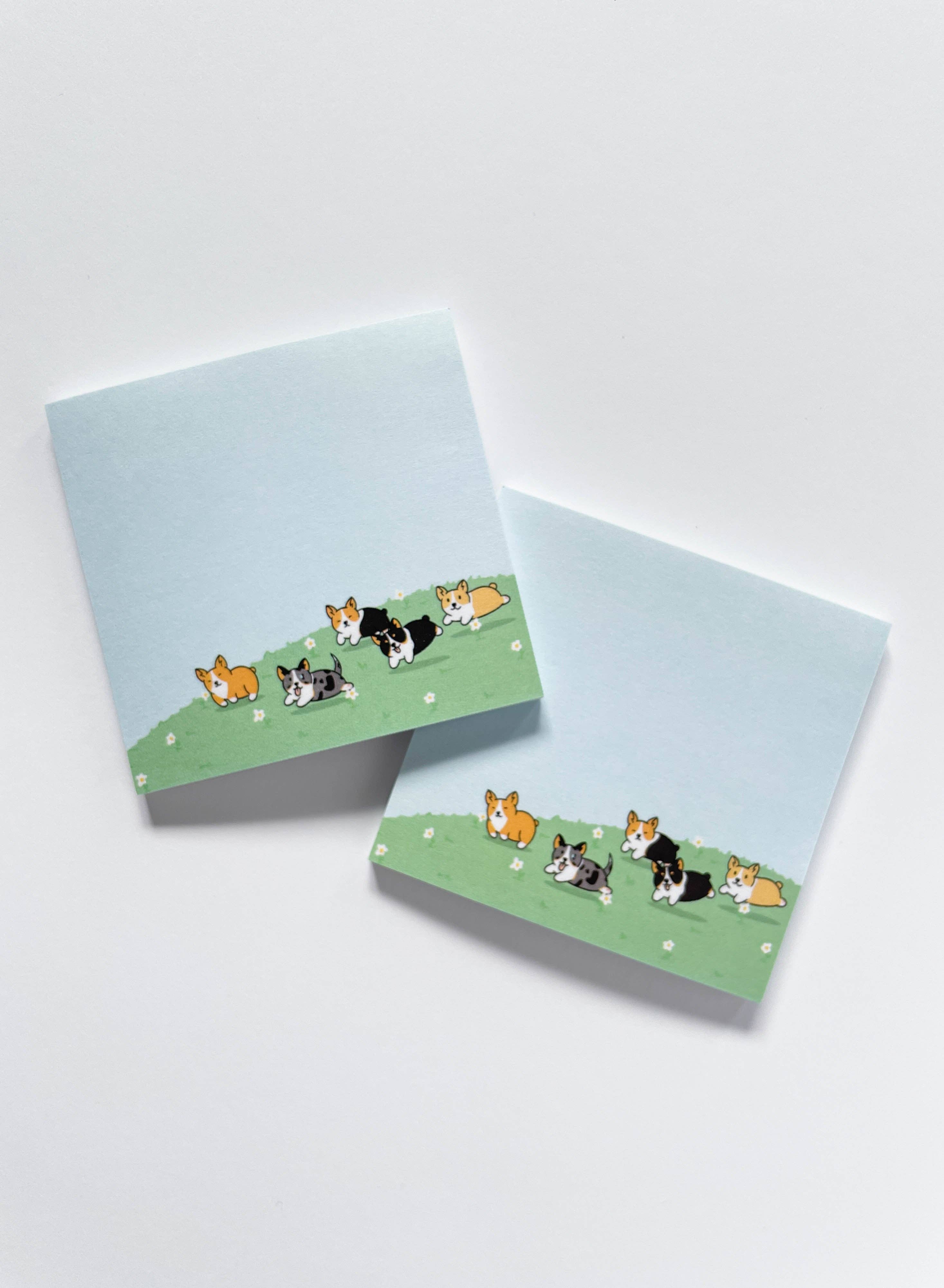 MATERIAL & INFO ◦ Post-It® Sticky Note ◦ 3" x 3" ◦ 50 sheets All sticky notes are designed by Little Corgo. Colours may slightly vary due to lighting, inconsistencies amongst monitors and monitor settings.