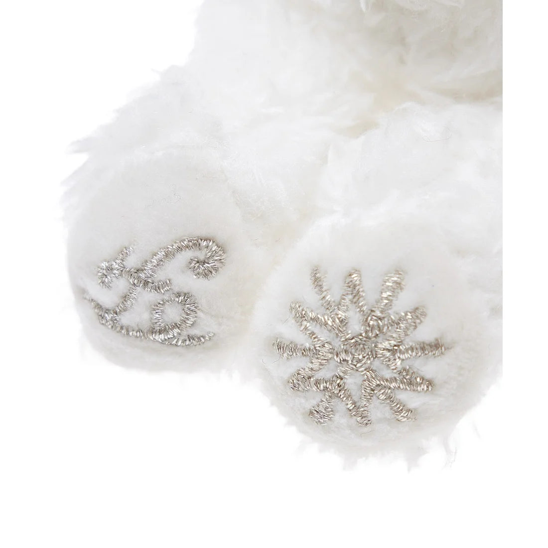 • Signature Metallic Embroidery: The bear’s footpads feature high-fidelity metallic silver stitching, showcasing the iconic Maison de FLEUR "F" monogram on one foot and a matching winter snowflake on the other.