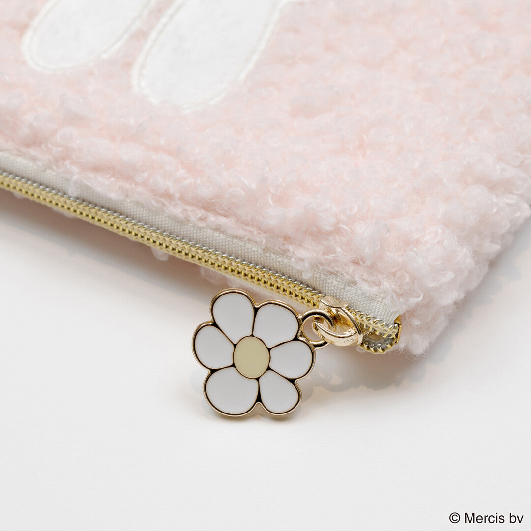 Why We Love It: It isn't just cute—it’s functional. The texture is incredibly soft to the touch, protecting your small valuables like jewelry, earphones, or lip balms from scratches. The zipper is finished with a unique enamel daisy charm, adding a springtime freshness to the design, while the gold-tone hardware provides a premium feel.