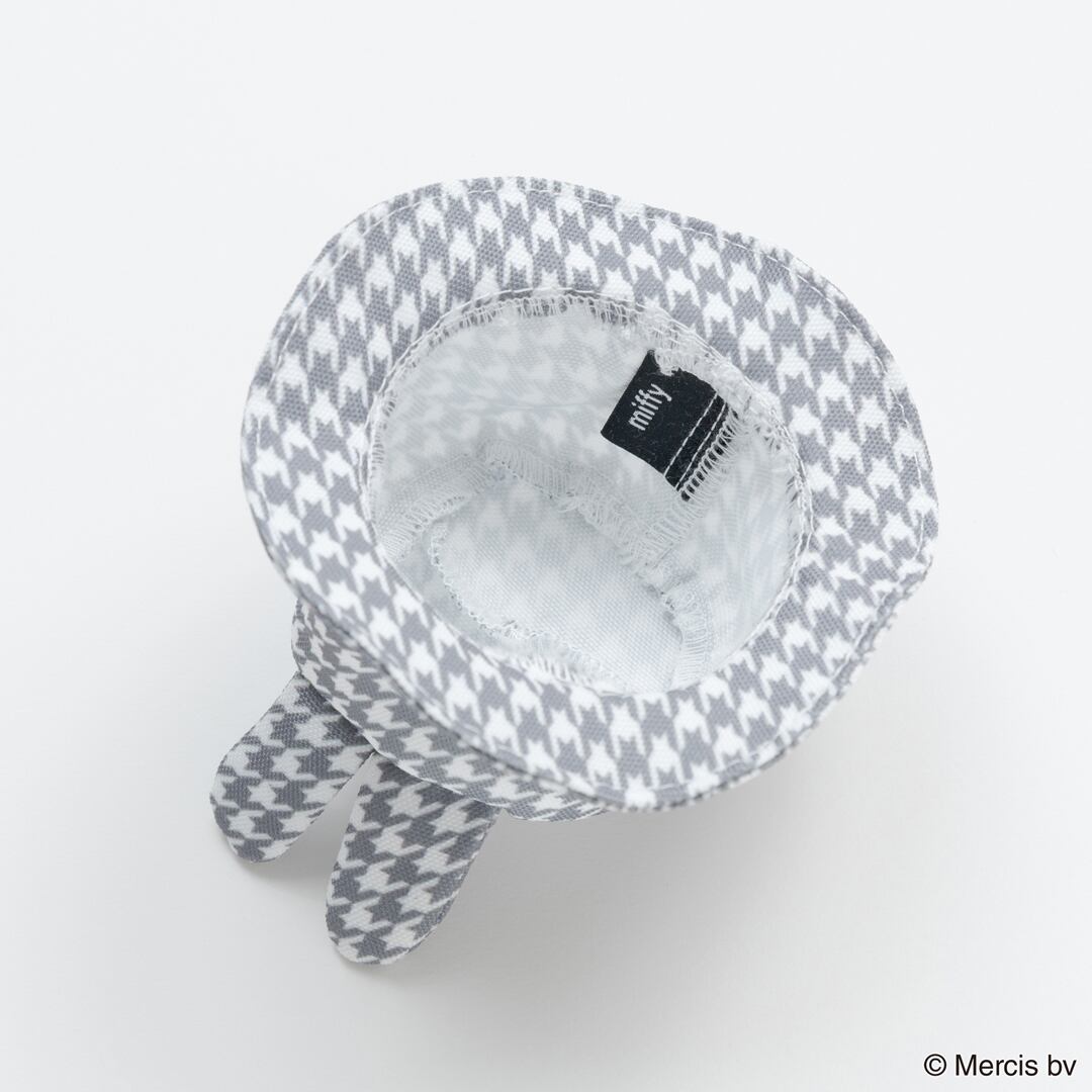 Featuring Miffy’s iconic face with embroidered eyes and cross-mouth, along with 3D bunny ears popping out the top, this mini hat is a must-have for fans. Available in a sleek Solid Black for a minimalist look, or a chic Grey Houndstooth for a patterned accent.
