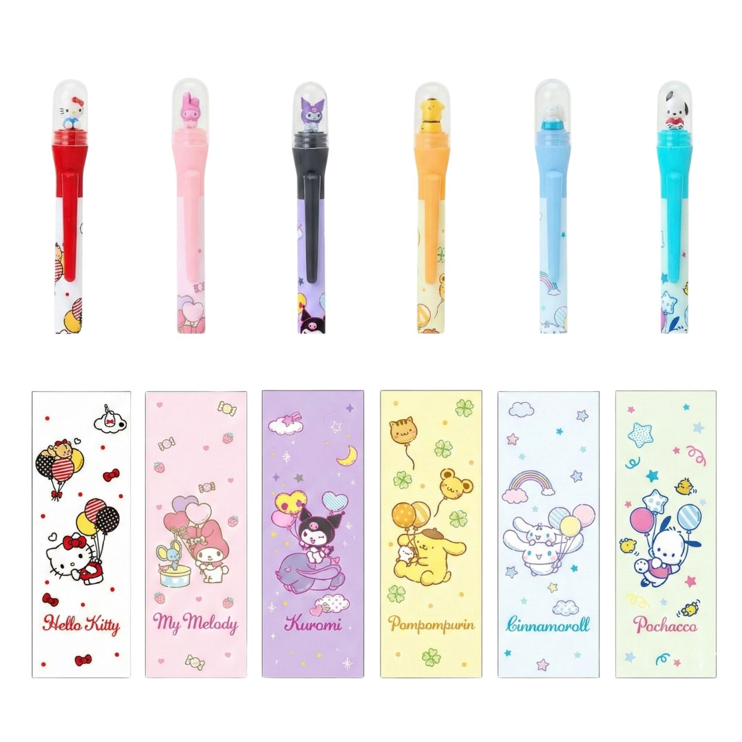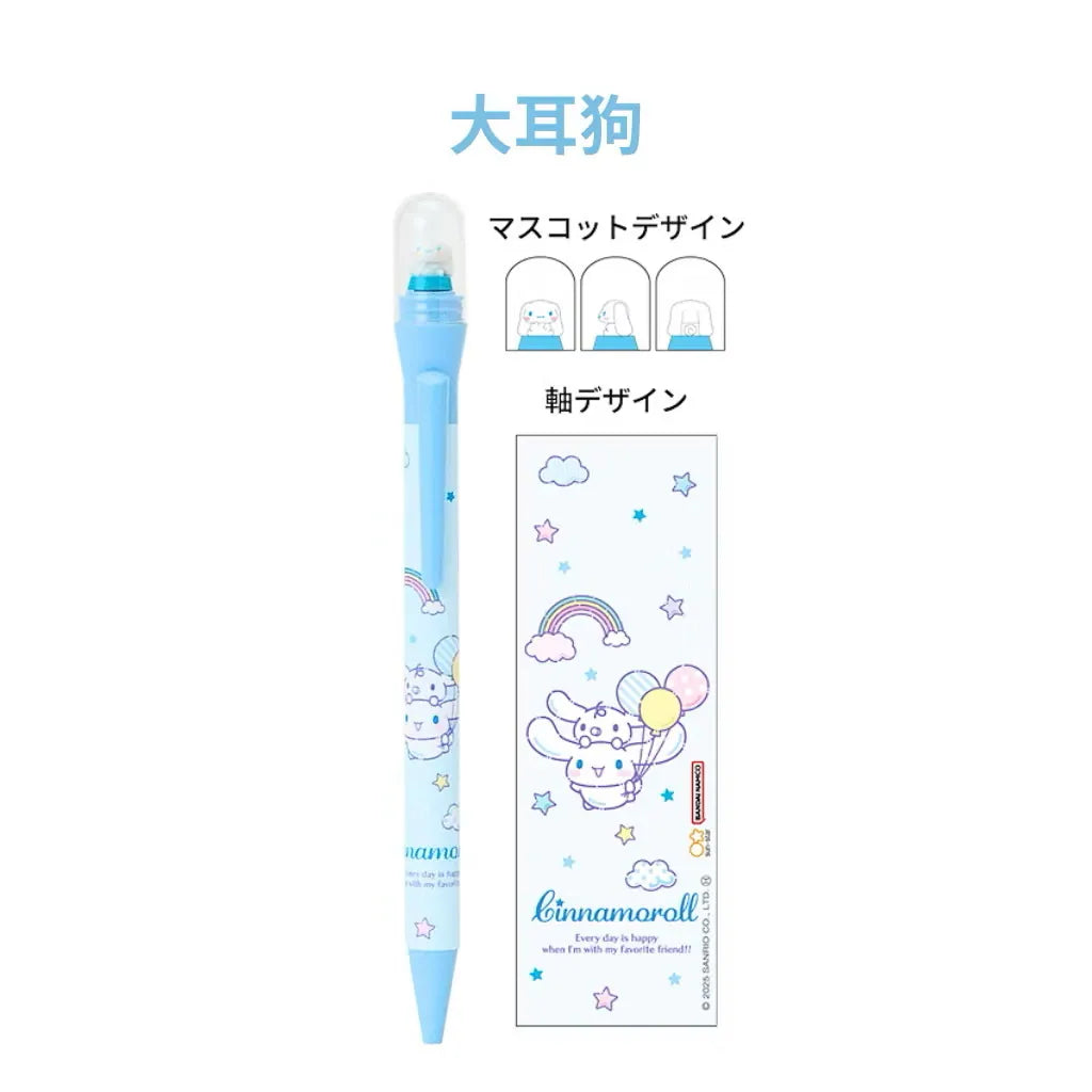 The Balloon Theme: The barrel features charming artwork of Sanrio characters floating away with colorful balloons and clouds, bringing a dreamy, pastel vibe to your pencil case.