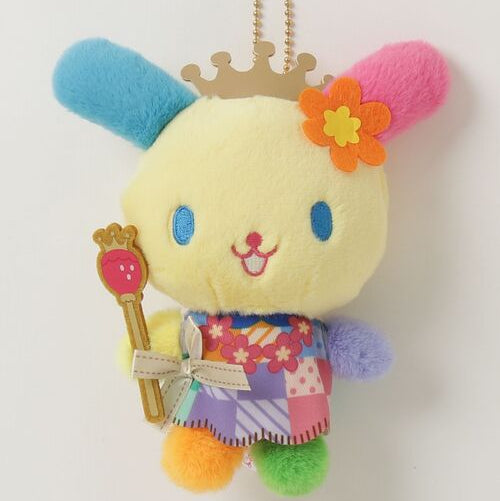 This detailed mascot holder captures Usahana’s transformation into royalty. She wears a majestic gold crown and holds a strawberry-ruby scepter, symbolizing her status in the Kingdom. Her signature colorful patchwork fur is vibrant and soft, paired with a matching royal dress that fans of the series will instantly recognize.