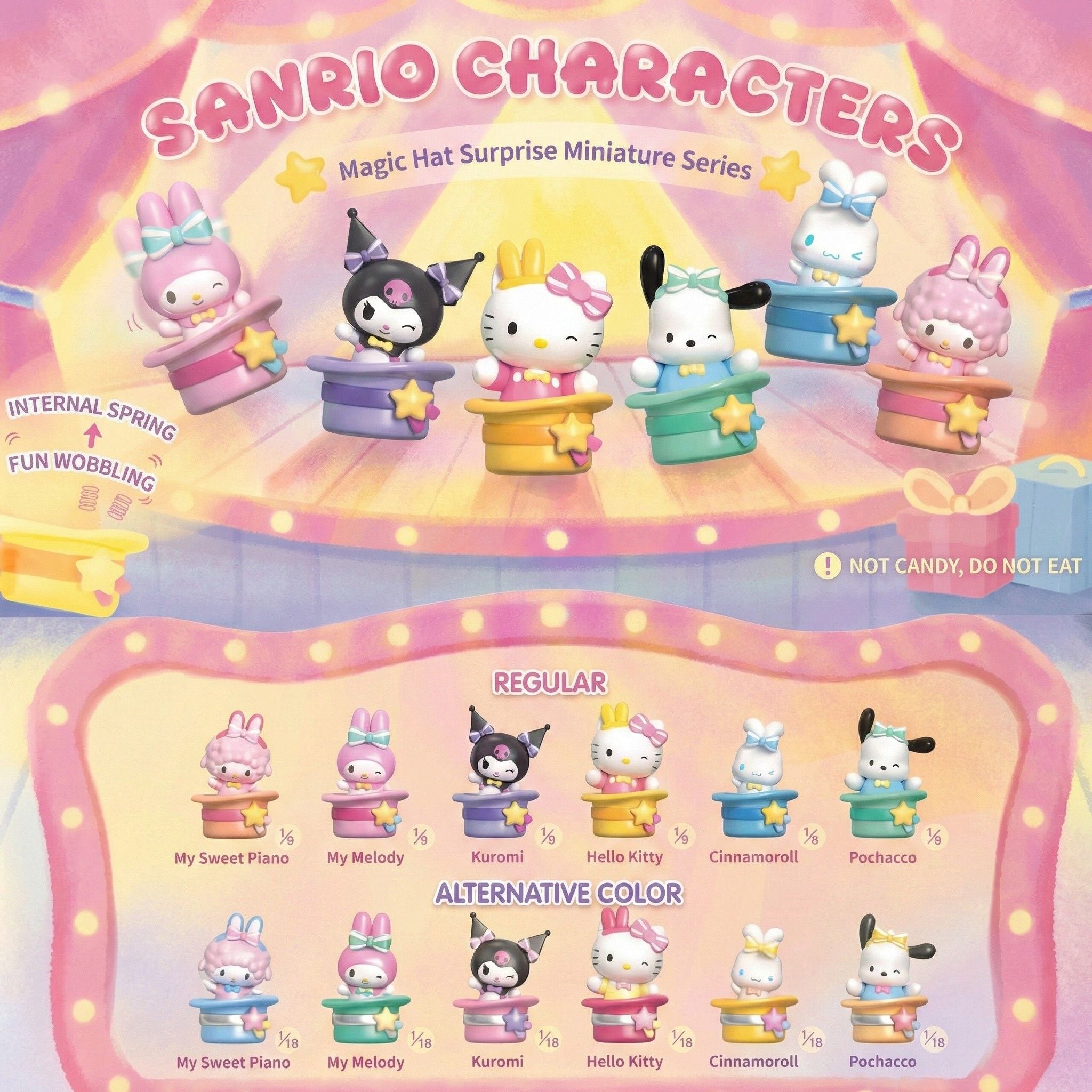 Get ready for a magical reveal! The Sanrio Characters Magic Hat Surprise Miniature Series brings your favorite friends to life in the most enchanting way. Each figure features a beloved Sanrio character popping out of a colorful magician’s top hat, ready to put on a show.