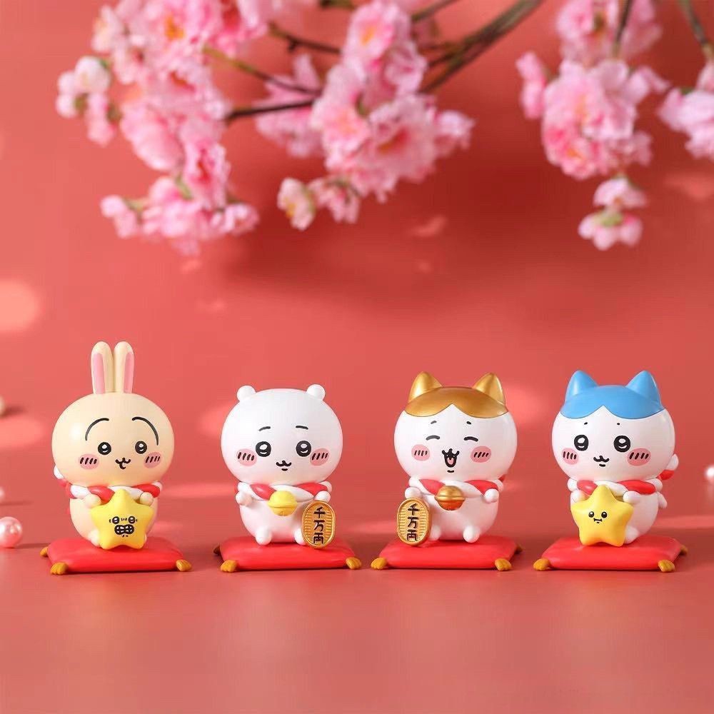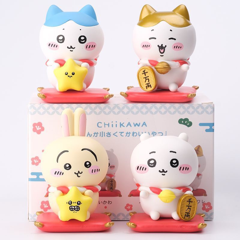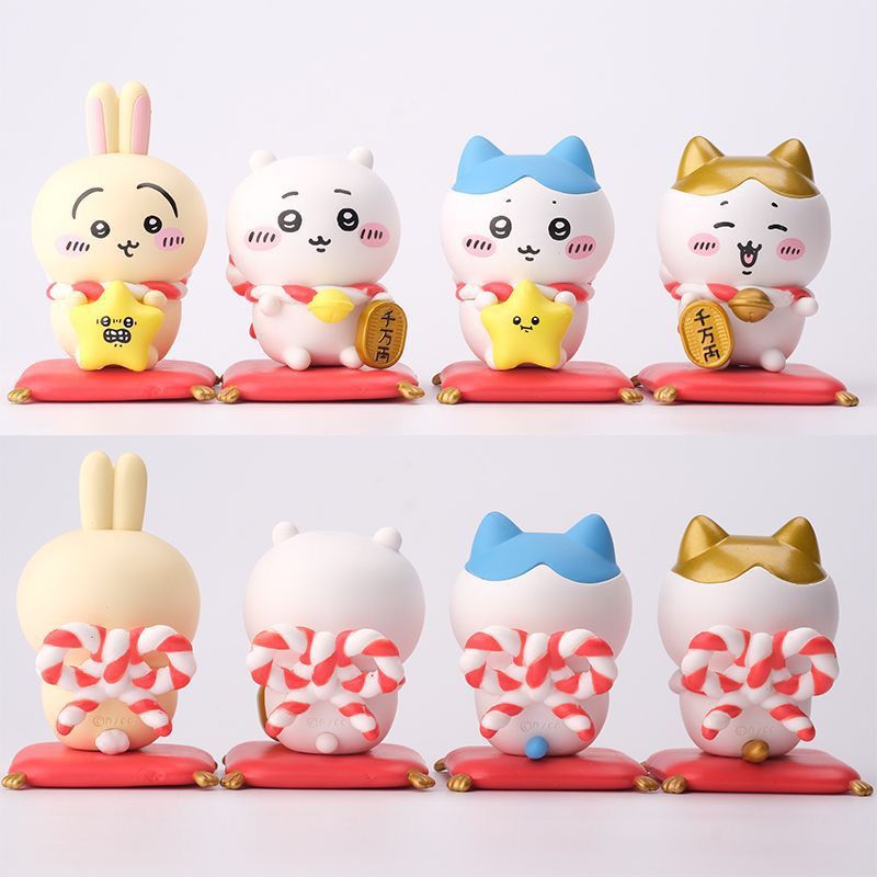Bring prosperity and joy into your home with this Complete Set of the Chiikawa Taiwan Exclusive Fortune Series. Unlike random blind boxes, this full collection guarantees you receive all 4 characters, including the highly sought-after Rare Golden Hachiware!