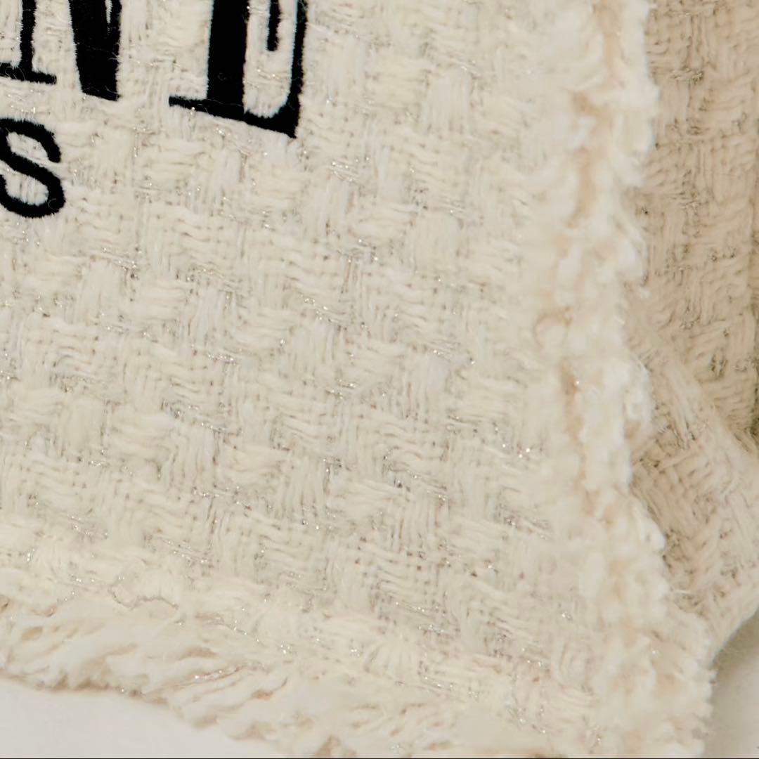 Chic Details: Eye-catching "ÉPINE PARIS" embroidery beautifully contrasts with the playful, frayed fringe edges that border the bag.