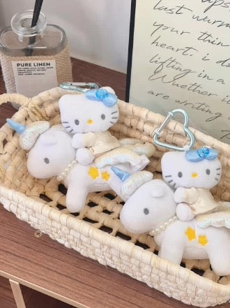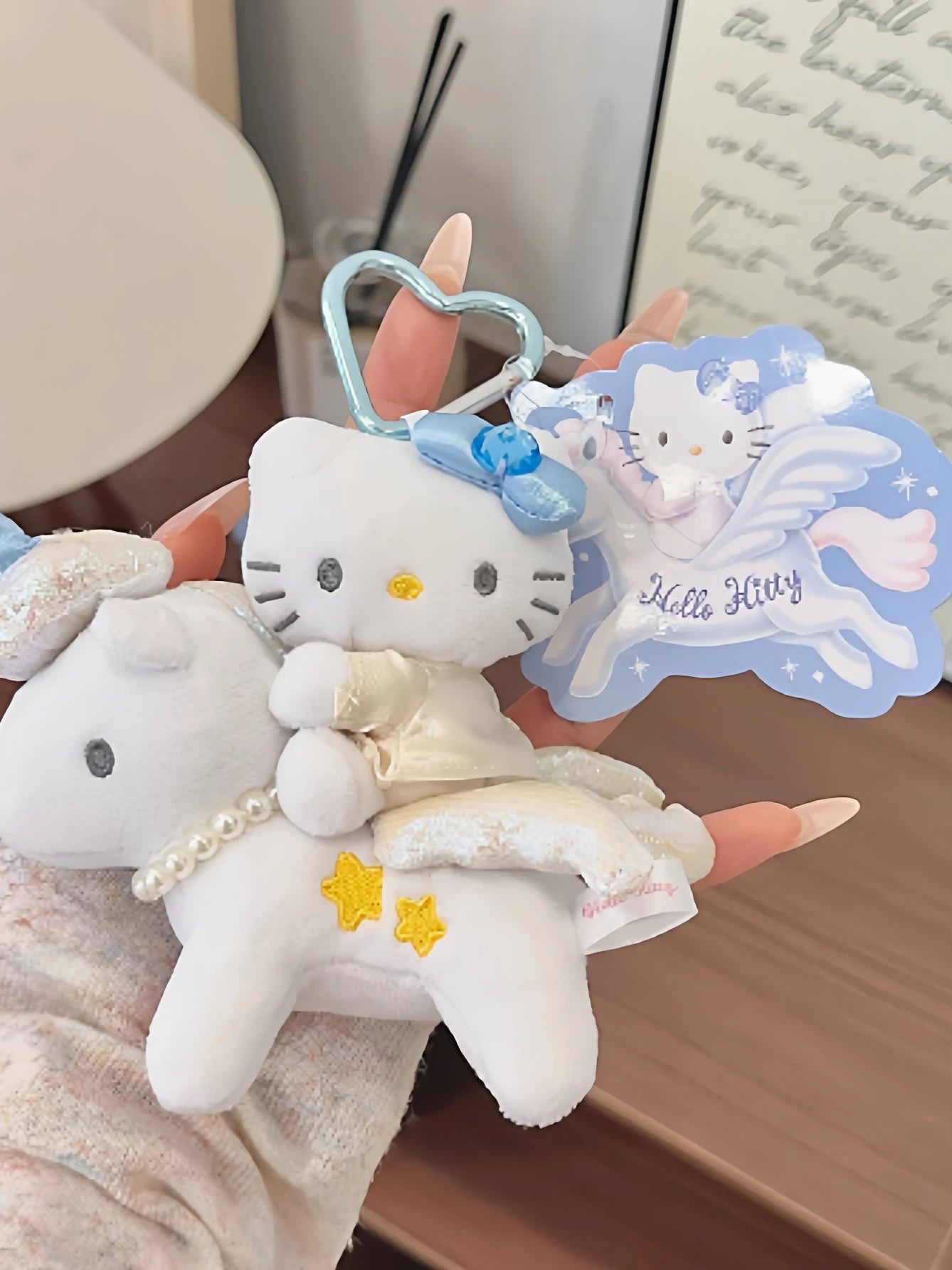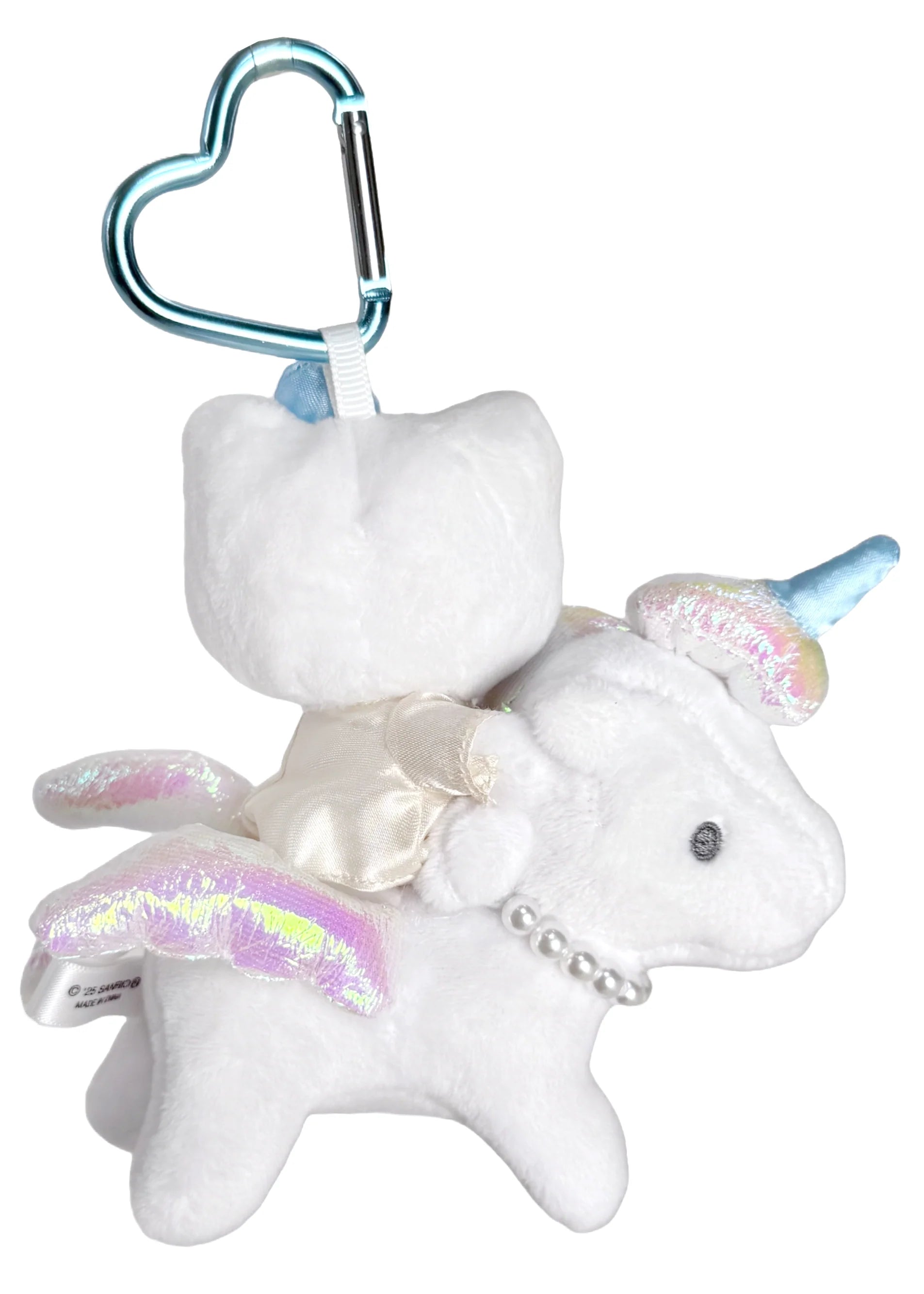 Add a touch of heavenly cuteness to your bag or backpack with this stunning Hello Kitty Angelic Pegasus Plush Mascot. This premium keychain features Hello Kitty riding a majestic white pegasus (winged unicorn), ready to whisk you away on a dreamy adventure.