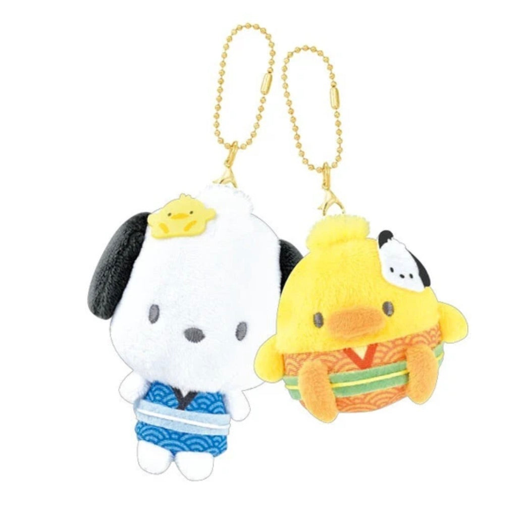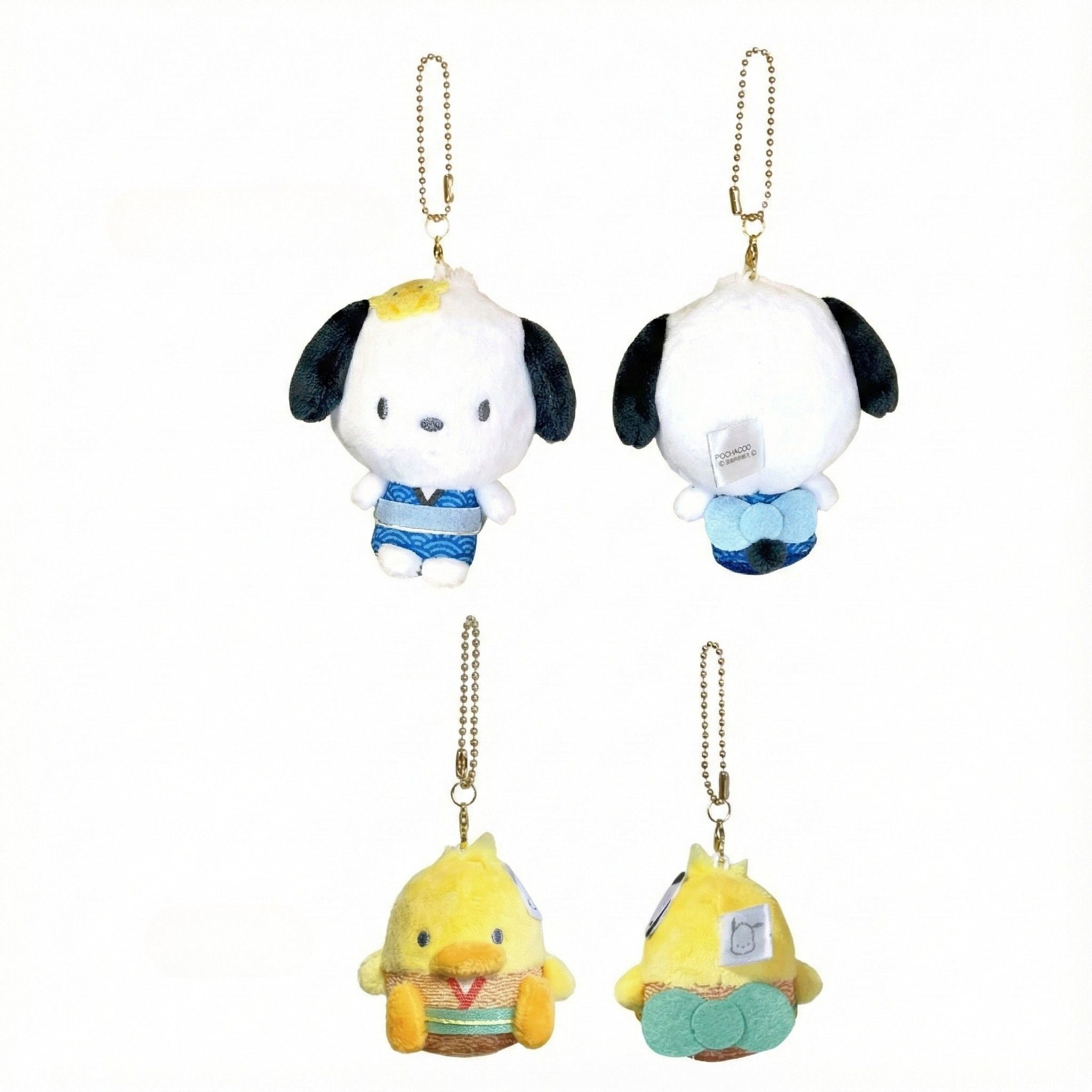 • Pochacco & P-Chan: The sporty pup Pochacco wears a refreshing blue kimono, paired with his tiny bird friend Peep in a matching yellow outfit.