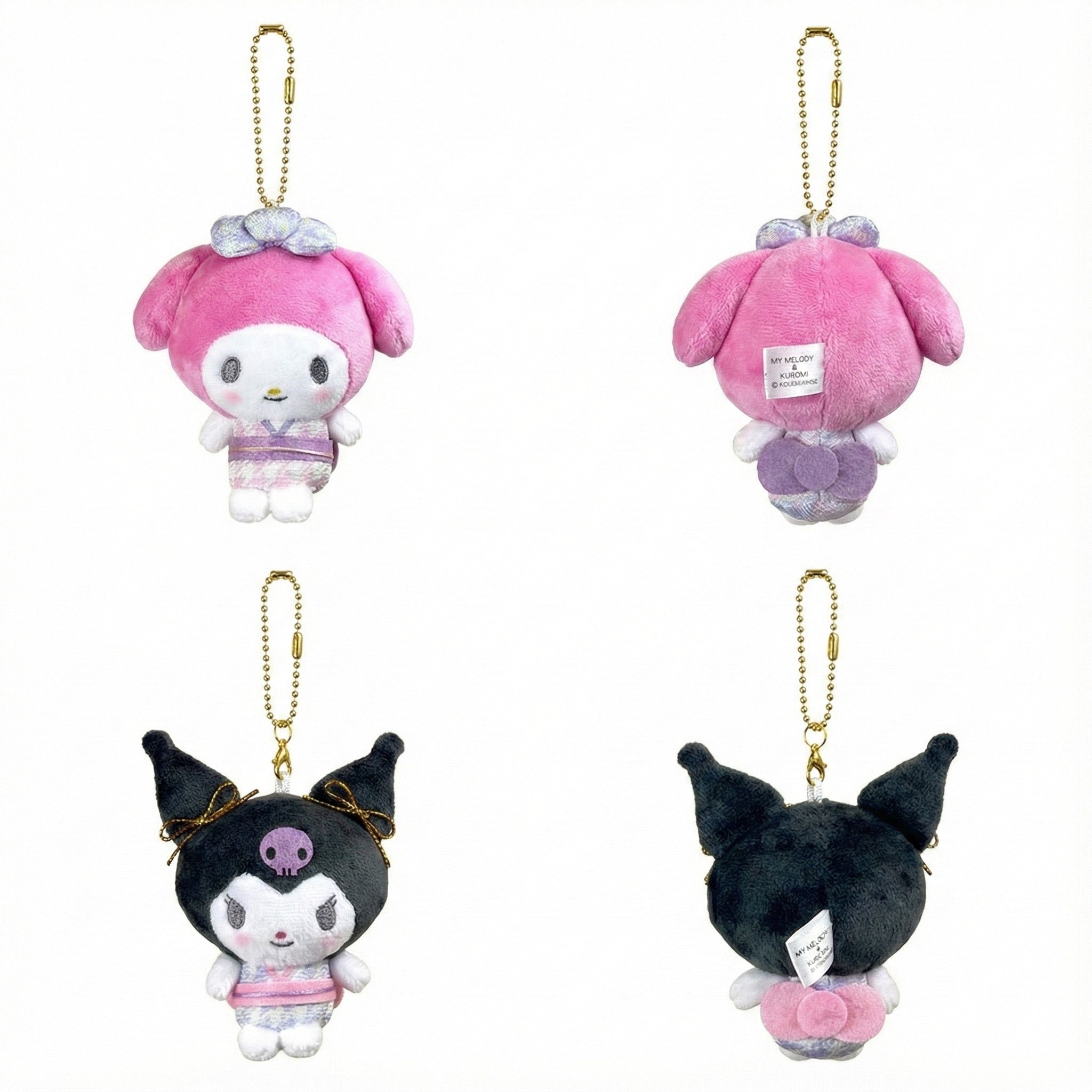 • Kuromi & My Melody: The ultimate frenemies reunite! Kuromi looks chic in a black kimono with gold accents, while My Melody is sweet as ever in pink.
