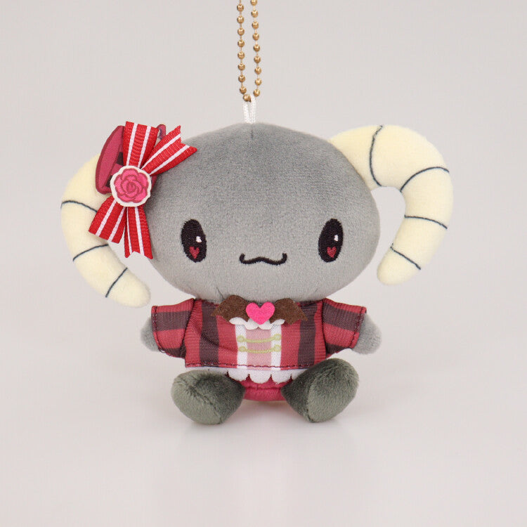 This 10cm mascot features Berry’s signature grey fur and spiraled ram horns, softened by a sweet red tartan tunic and a charming rose-adorned ribbon. His expression captures his playful "tsundere" personality with unique heart-shaped eyes that add an extra touch of loveliness.