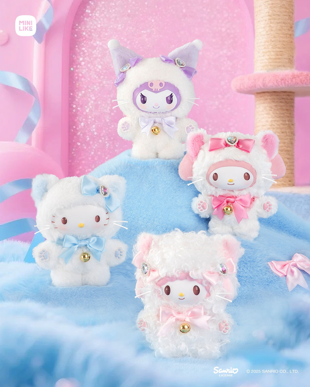 Meet the ultimate luxury plush experience! 🐾✨ The Sanrio Shining Meow Series offers a stunning twist on your favorite characters. Dressed in snowy white kitten costumes, these blind box pendants perfectly blend the huggable softness of a plushie with the premium detail of a designer art doll. Whether they are dangling from your favorite tote or standing proudly on your display shelf, these "doll-faced" mascots are guaranteed to steal the spotlight.
